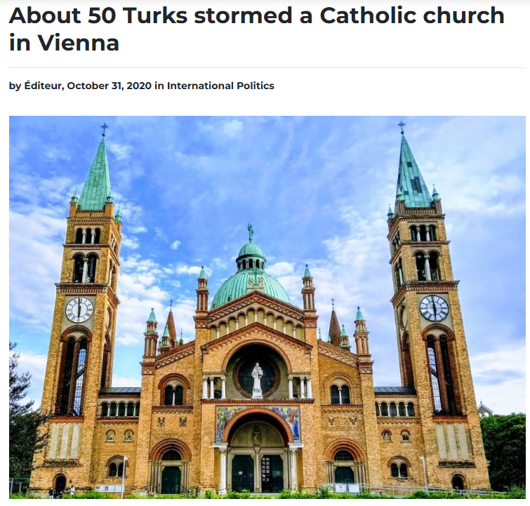 31. listopada 2020. Oko 50 mladih Turaka upalo je u katoličku crkvu Svetog Antuna Padovanskog u bečkom okrugu Favoriten, izvijestile su novine Kurier pozivajući se na policiju. Izvješćuje se da je oko 50 kriminalaca provalilo u crkvu u četvrtak navečer i tamo organiziralo nerede.