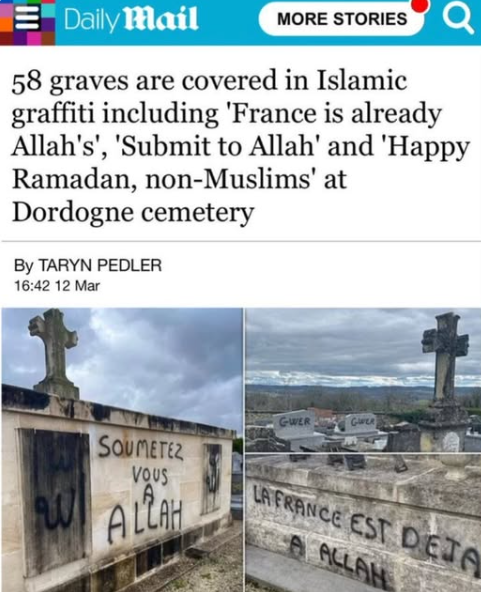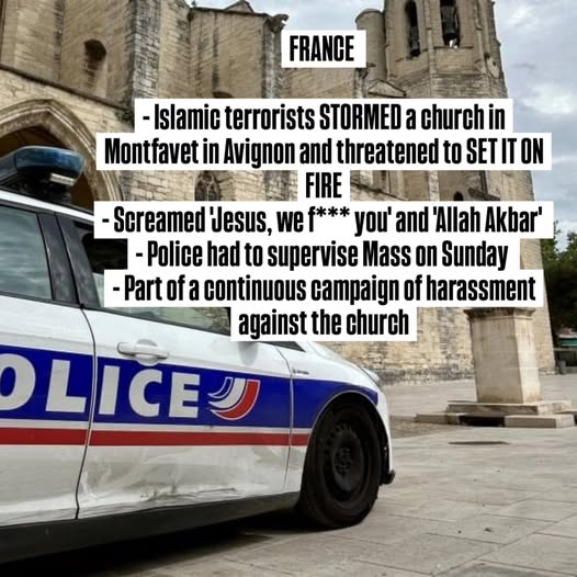 20. svibnja 2025. Banda islamističke mladeži u Francuskoj, uzvikujući džihadistički slogan Allahu Akbar, ovog je mjeseca prijetila katoličkom svećeniku i obećala zapaliti njegovu crkvu prije nego što su pobjegli.
