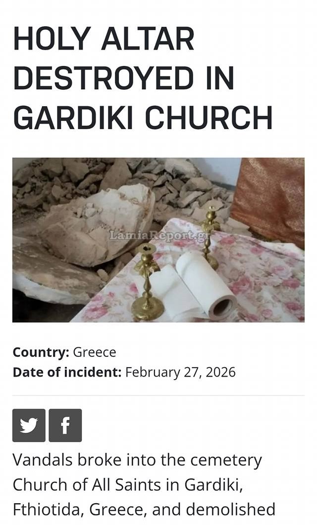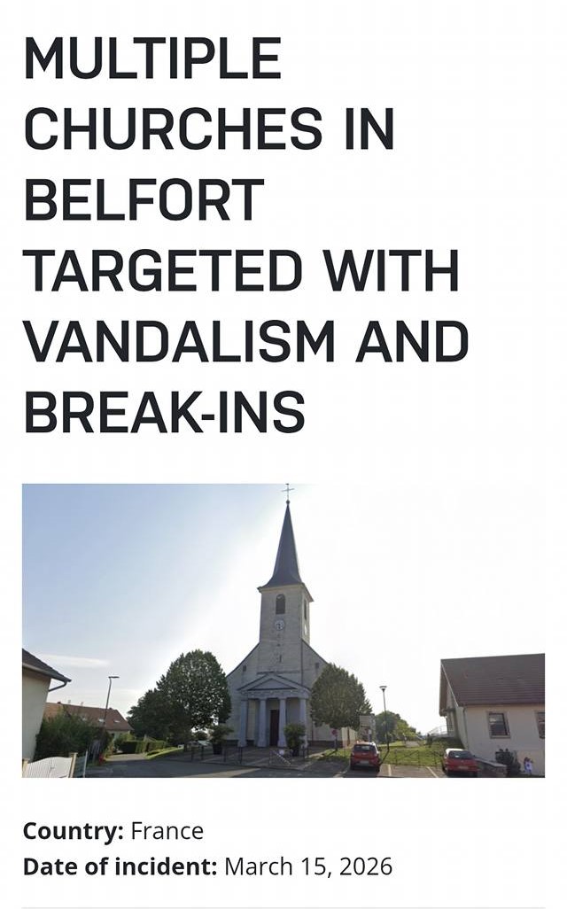 Izvješće organizacije Pomoć Crkvi u Nevolji (ACN) ukazalo je na globalni porast nasilja nad crkvama, s gotovo 1.000 napada na crkve u Francuskoj i više od 600 slučajeva vandalizma u Grčkoj tijekom 2023. godine. Slične brojke zabilježene su i u Španjolskoj i Italiji.