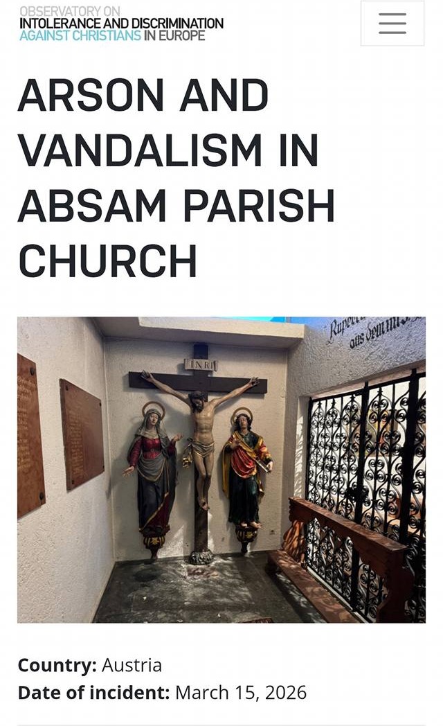 Crkve i kršćanski simboli diljem Europe suočavaju se s rastućim valom napada. Samo u 2023. godini zabilježeno je 2.444 protukršćanska incidenta u 35 europskih zemalja — uključujući vandalizam, palež, prijetnje i fizičko nasilje. U Francuskoj je broj slučajeva paleža crkava porastao za više od 30% u 2024. godini. Ovaj zabrinjavajući trend priznali su Europski parlament i međunarodne organizacije, koje upozoravaju na rastuću klimu neprijateljstva prema kršćanima i njihovoj vjeri.