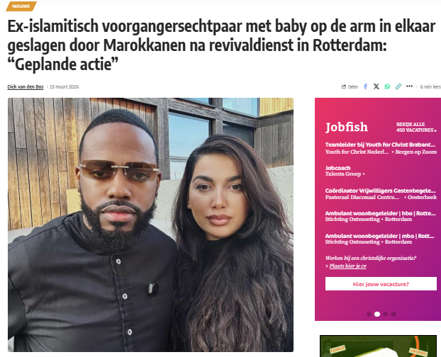 Nakon mise u Rotterdamu prošlog tjedna, pastoralni par Gregory i Manolya Jefferson pretučeni su do smrti u prisutnosti svoje djece. Četrnaestomjesečna beba doslovno je bila u njezinom naručju. Manolya je bivša muslimanka Turkinje i već redovito prima online prijetnje zbog svog obraćenja. Sada je skupina Marokanaca zapravo napala, s porukom da bi trebali zašutjeti. "Ovo je sasvim druga razina. Zaista sotonistički, ako nekoga napadnete s bebom u rukama."