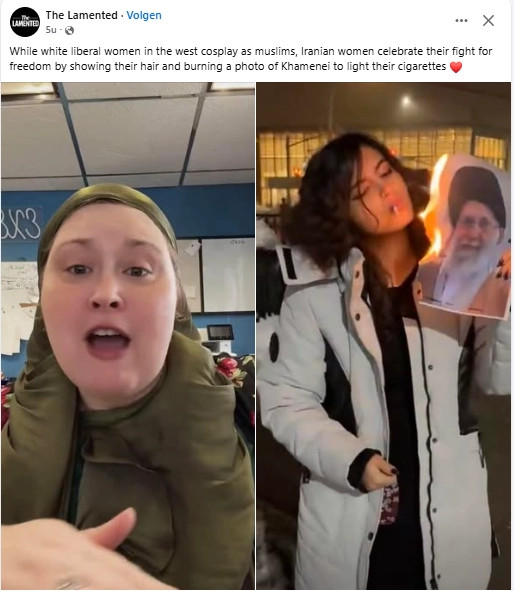White liberal women in the West pretend to be Muslims, while Iranian women celebrate their struggle for freedom by showing their hair."