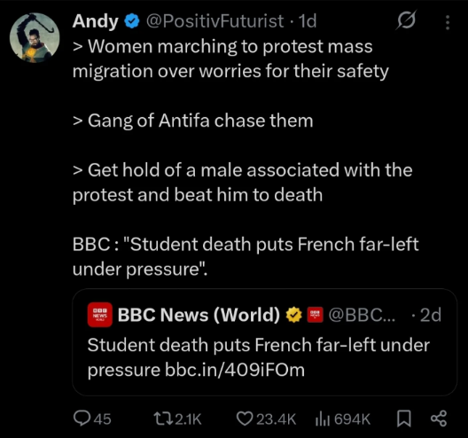This selective curation shows the very problem at the heart of Wikipedia's ideological capture: uncomfortable truths that do not fit a preferred narrative are downplayed, erased, or never allowed to gain traction. In this way, platforms that present themselves as neutral arbiters of information actively participate in shaping which tragedies matter and which are quietly forgotten.