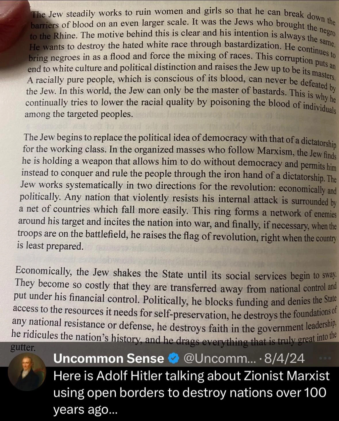 U e-poruci na slici navodi da je to "židovski način zarađivanja novca", dok dopušta nežidovima da "posluju u stvarnom svijetu". To ukazuje na pogrdan stav u kojem odbacuje nežidove kao one koji obavljaju fizički rad, dok sebe i svoj krug stavlja iznad tih pravila.