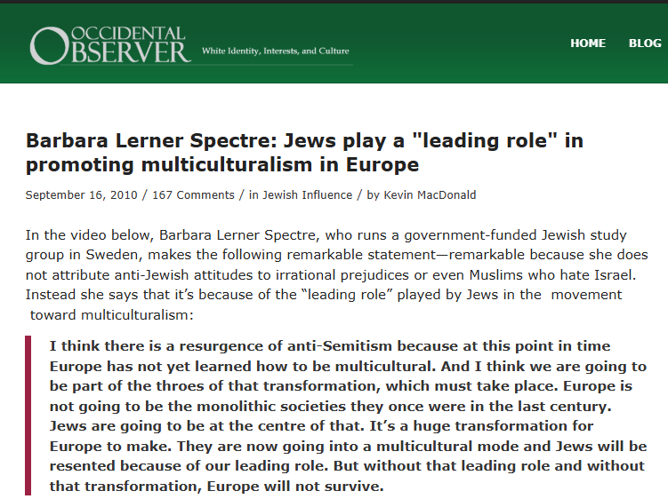 Barbara Lerner Spectre: Jews play a "leading role" in promoting multiculturalism in Europe