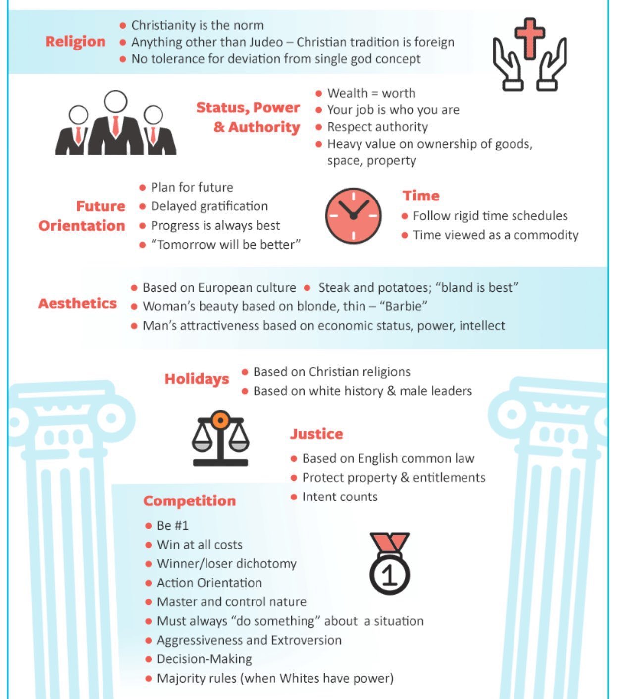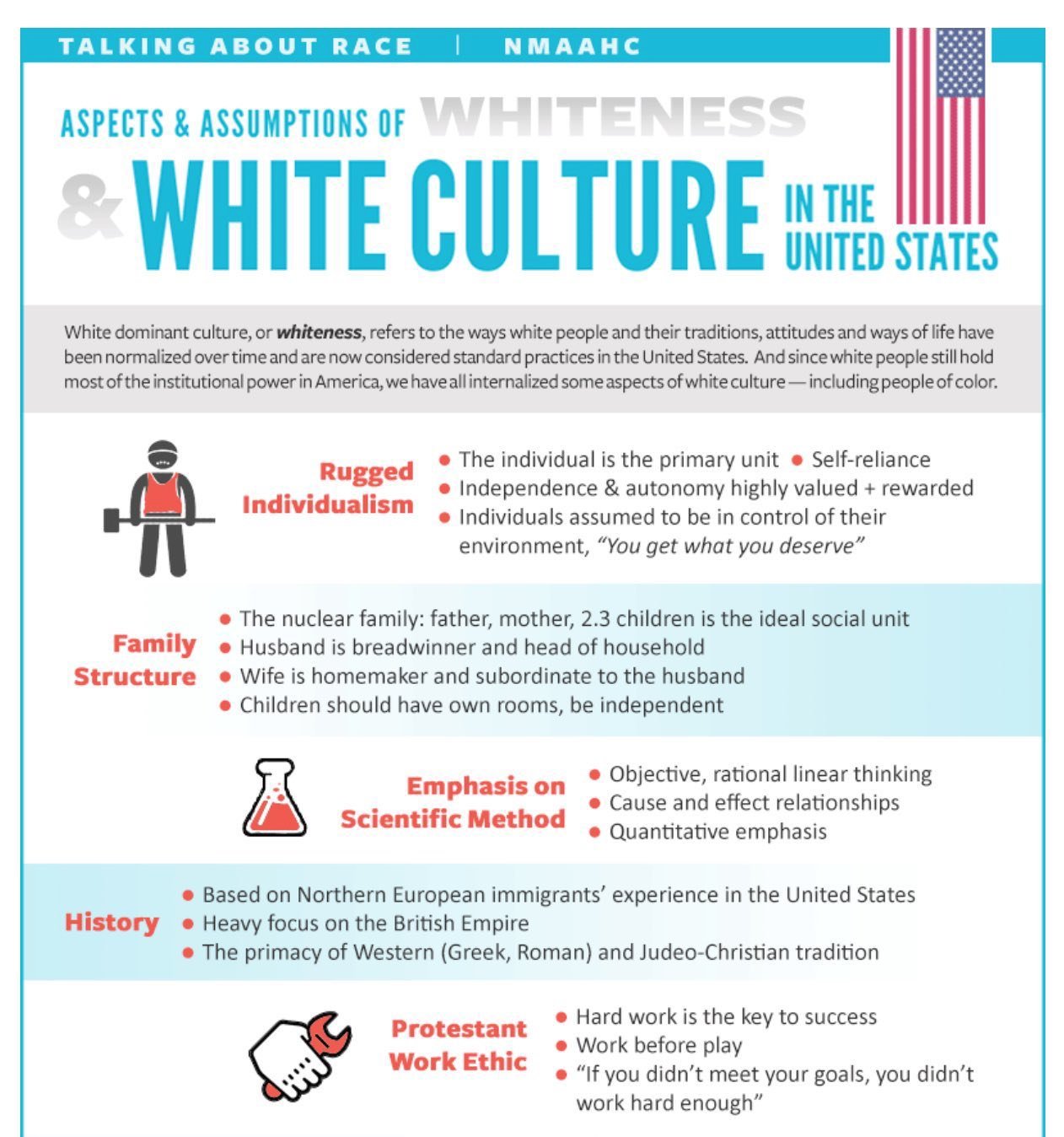 The Smithsonian is an influential American museum and research institution. In 2020, an infographic circulated online that was attributed to the Smithsonian, about so-called "aspects of white culture" (such as punctuality, individualism, and rationality).