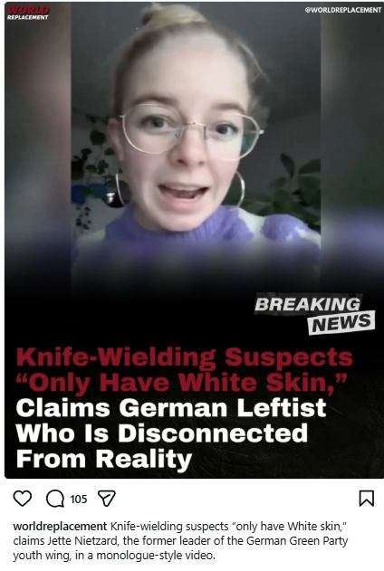 In the video, Nietzard—a controversial Green Party member well known for triggering anger even within her own party—claims that knife controls in Berlin metro stations are targeting foreigners, who she argues are the wrong people.