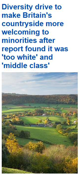 2 feb 2026 UK (source Dailymail) The British countryside is in the midst of a diversity drive after a government-commissioned report found it was too 'white' and 'middle-class'.