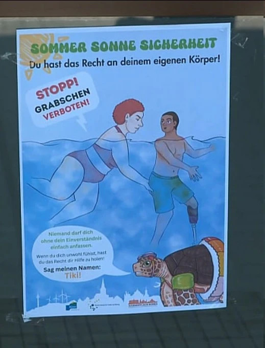 Duitsland heeft een probleem met migrantenmannen uit ontwikkelingslanden die Duitse vrouwen aanranden. Dus heeft de Duitse overheid een publiekscampagne opgezet waarin gewaarschuwd wordt voor witte vrouwen die kwetsbare immigranten, die soms ook een prothese hebben, aanranden.