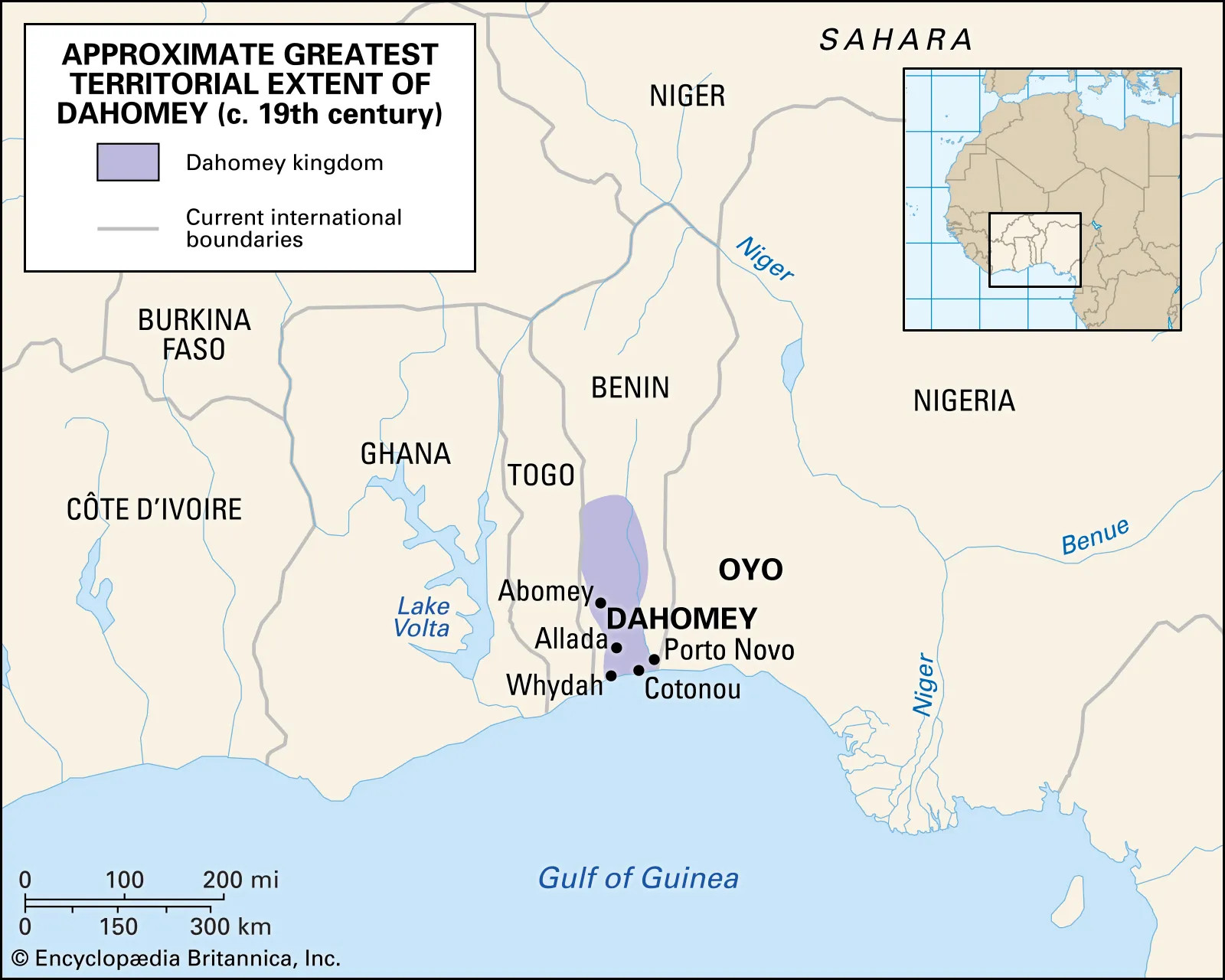 Het Koninkrijk Dahomey (ca. 1600–1904) werd een dominante West-Afrikaanse staat nadat het kuststaten als Allada en Whydah had veroverd. Met toegang tot de Atlantische kust werd Dahomey een grote exporteur van tot slaaf gemaakte mensen. Het koninkrijk vertrouwde sterk op oorlog en rooftochten — vaak uitgevoerd door het gemilitariseerde leger, waaronder elitekorpsen van vrouwelijke soldaten — om mensen gevangen te nemen voor de handel. Veel van deze gevangenen werden overzee verkocht, terwijl anderen als dwangarbeiders binnen het koninkrijk werden gehouden.