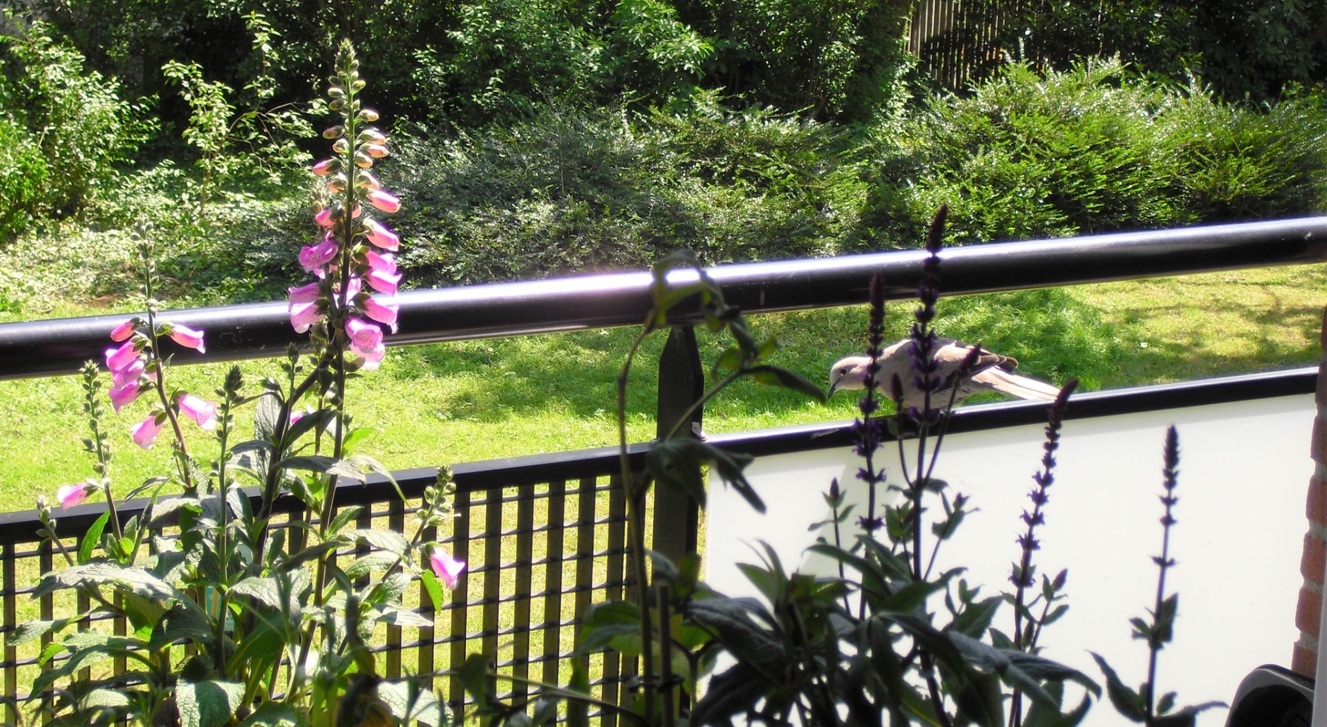 Toen ik op mijn balkon keek om te zien waar de merel was en zag dat hij echt was weggevlogen, hoorde ik weer iemand mij roepen. Deze keer onder het balkon.