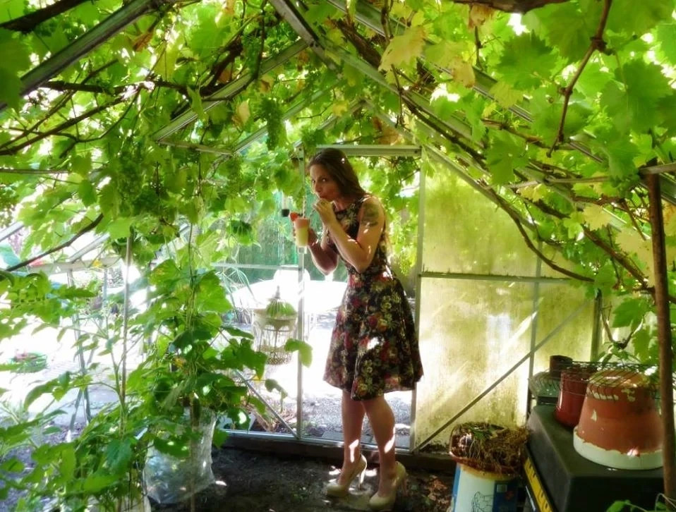 Ik in de mini Hof van Eden (serre van mijn ouders in Nederland, 2018)